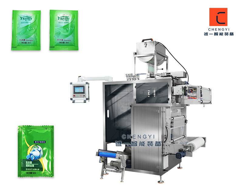 雙列雙排液體包裝機(jī)適用于洗發(fā)水 、沐浴露、番茄醬、化妝品、膏體等液體物料包裝,袋子類(lèi)型有四邊封平口袋,四邊封鋸齒袋,也可以定制樣式。